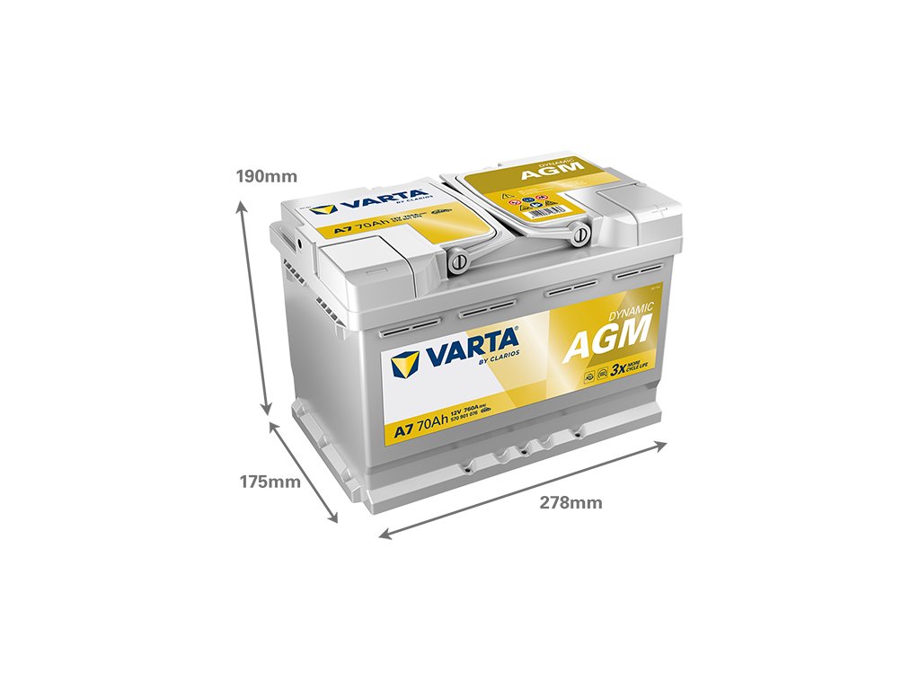 Varta Dynamic AGM 12V 70Ah 760A, 570 901 076, A7 česká distribuce, připravena k použití + výkup staré autobaterie při doručení nové (nepovinné)